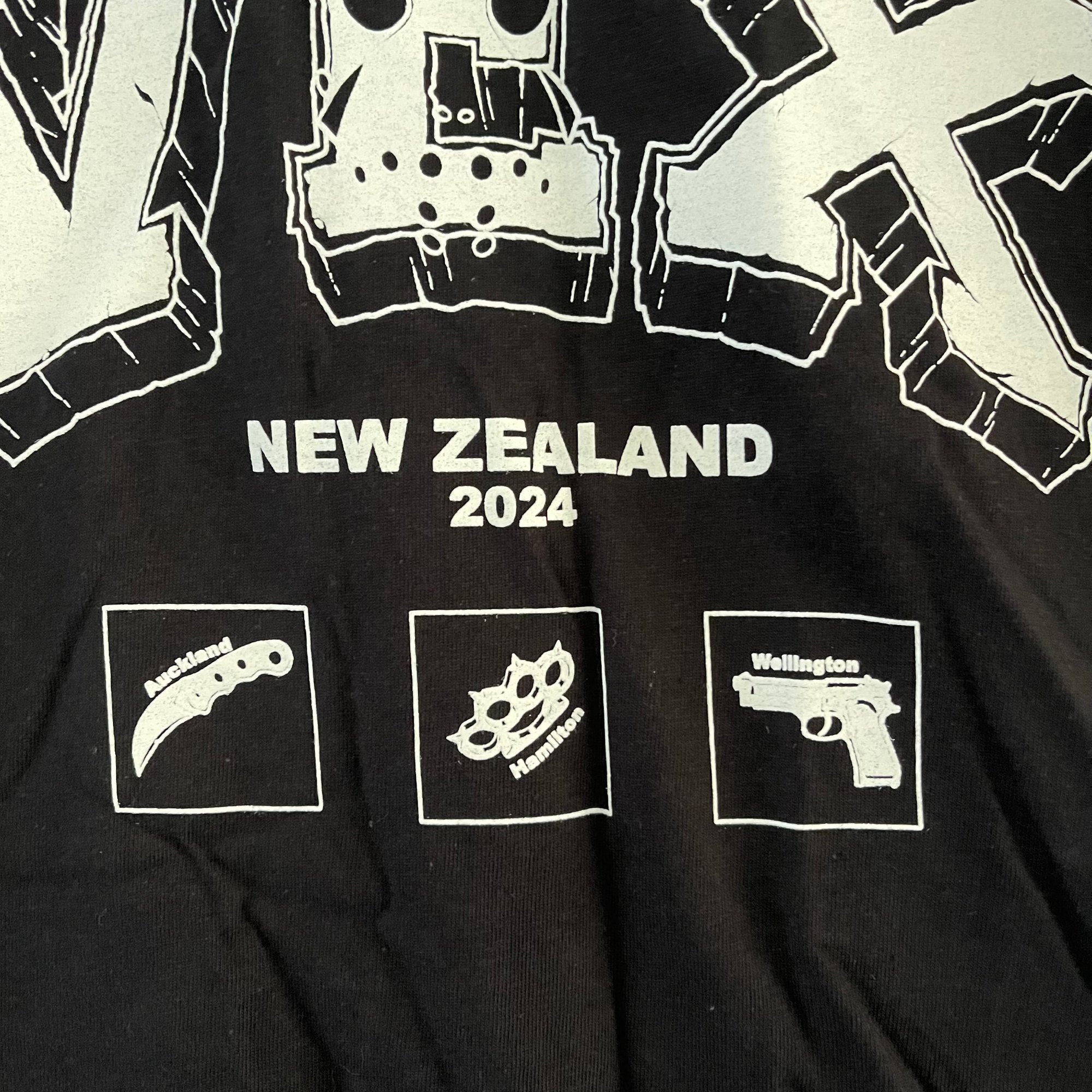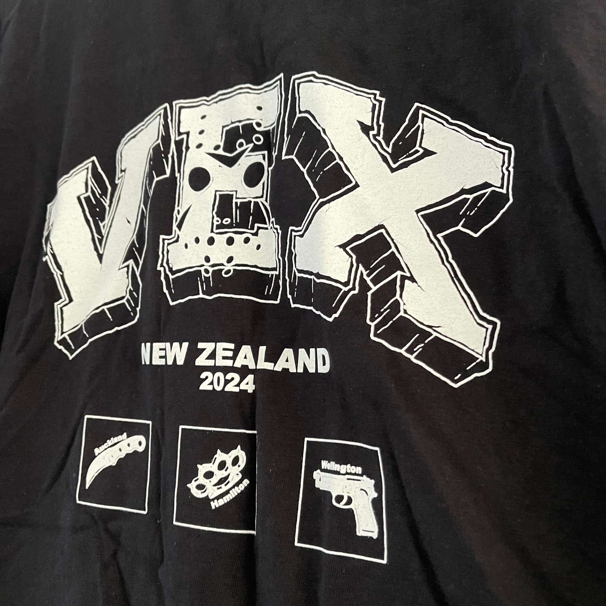 Australian hardcore band VEX HC, NZ Tour Tee featuring Auckland, Hamilton & Wellington.